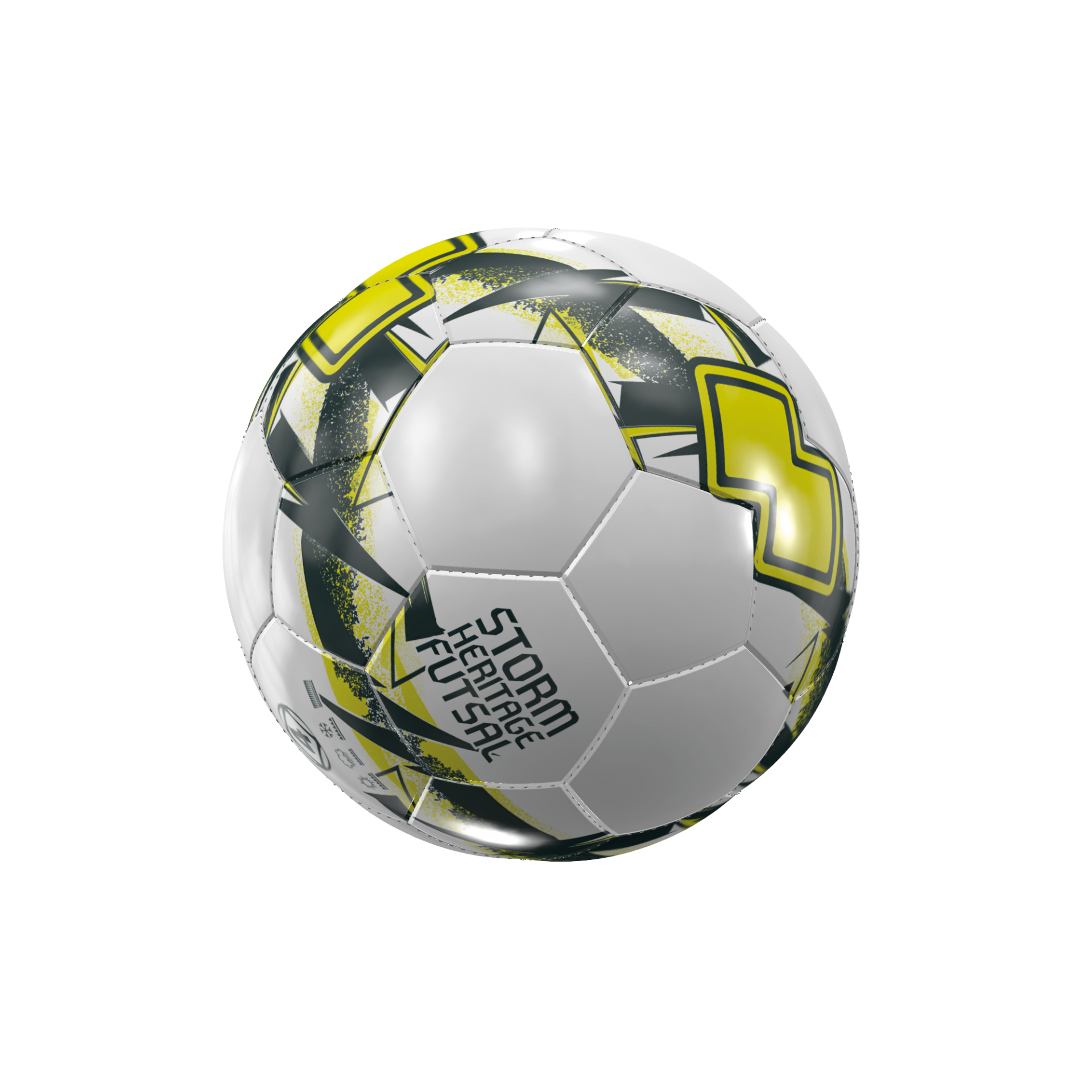 Construída com 32 painéis cosidos à mão em tecido multicamadas e revestida com um inovador revestimento texturizado em TPU, a bola Storm Heritage Futsal foi concebida para atender às necessidades de todos os praticantes de futsal.