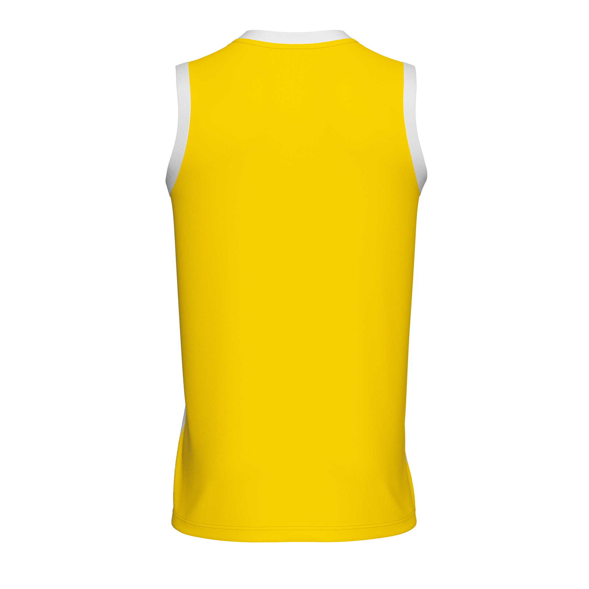 Apresenta uma gola redonda larga, que garante um acabamento limpo e confortável, e detalhes contrastantes na gola e nas cavas, que valorizam o design e permitem um elevado nível de personalização, reforçando a identidade da equipa.