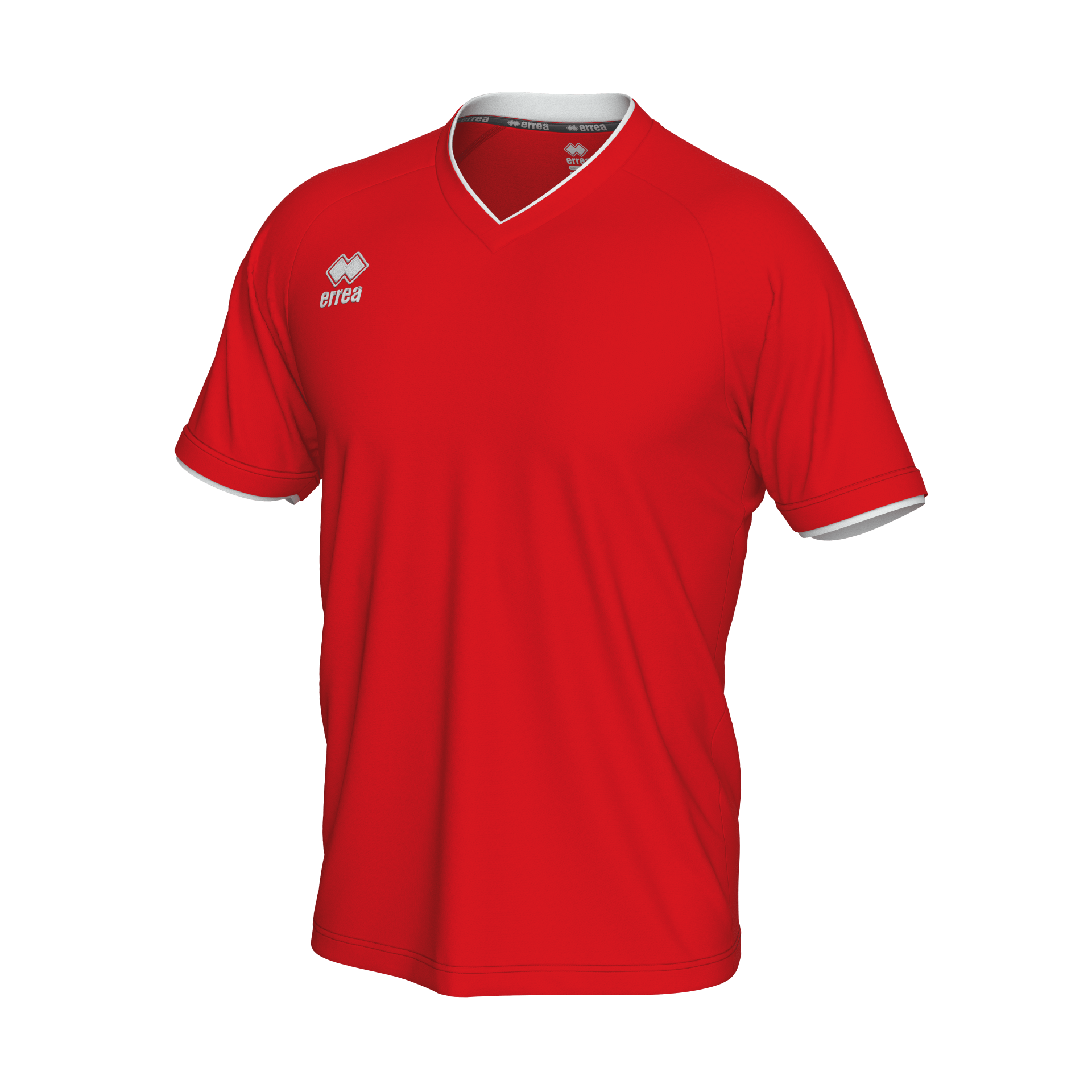 Camisola desportiva vermelha com gola em V branca e bordas nas mangas