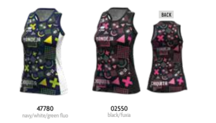 Este top apresenta dois designs com impressão sublimada em toda a superfície e dois painéis laterais contrastantes em cor sólida. O design semi-ajustado oferece maior liberdade de movimento, enquanto a gola redonda proporciona um uso confortável.