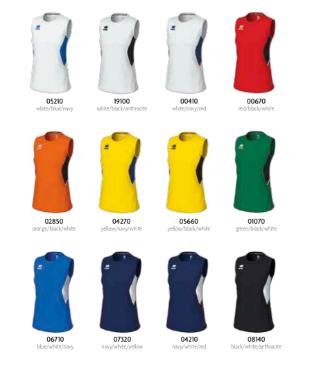 Doze camisolas desportivas sem mangas em várias combinações de cores