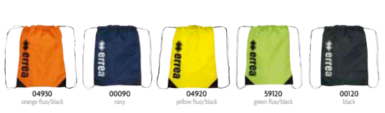 Cinco mochilas de cordão em várias cores com logotipo 'errea' em preto