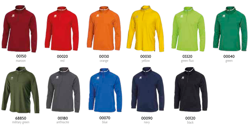 Doze casacos desportivos coloridos com códigos e nomes das cores