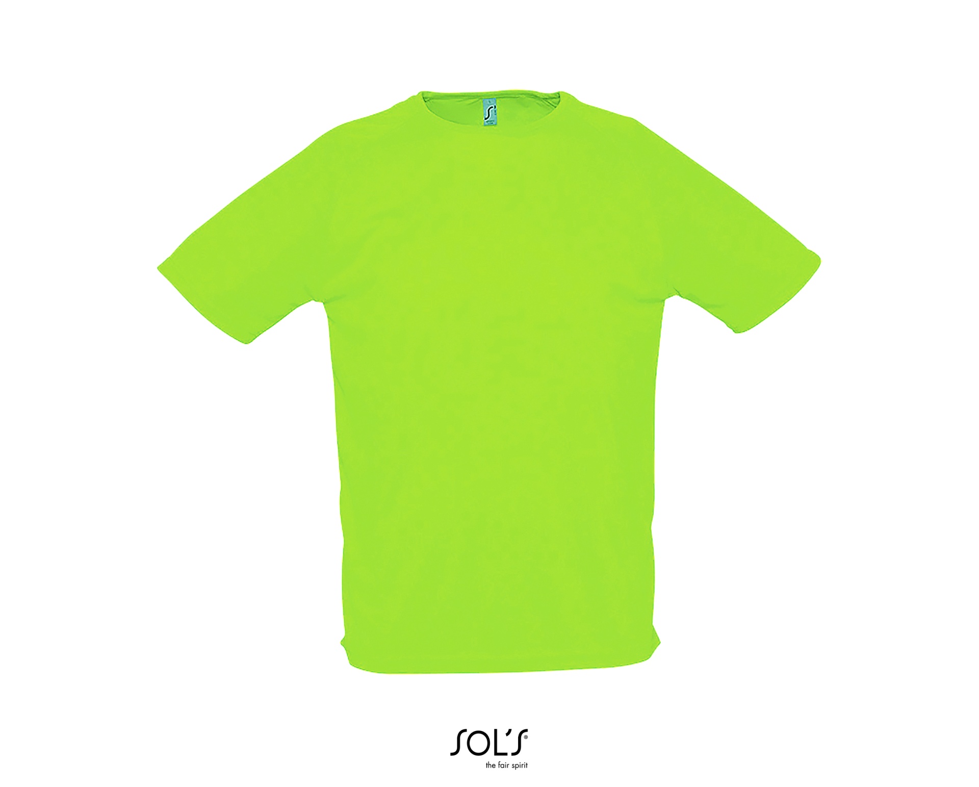 Camiseta verde néon de manga curta com gola redonda e logotipo SOL'S